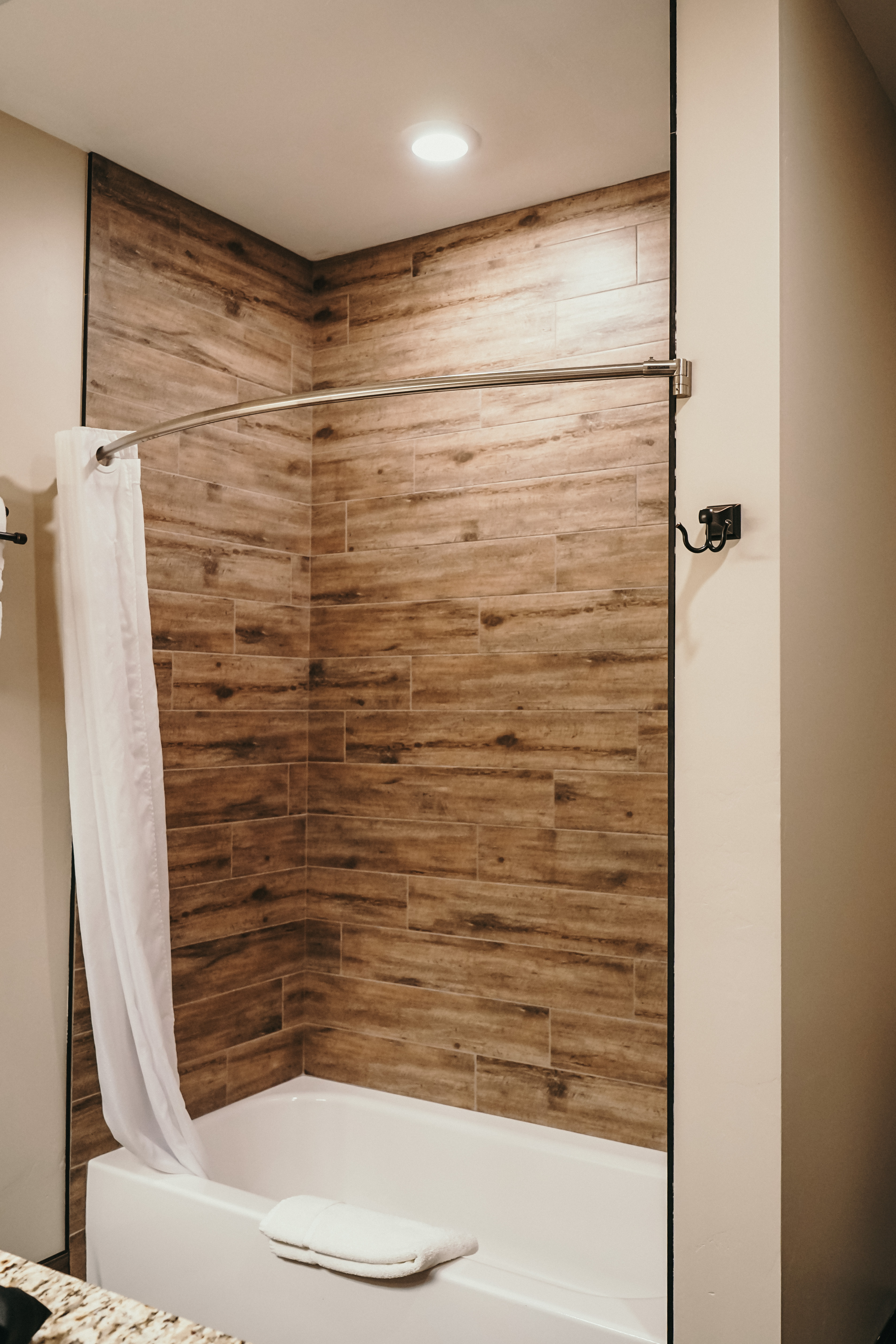 King Bed, Full Shower with Tub, Mini Fridge, Microwave, Coffee Maker, Desk, Television, free Wi-Fi.