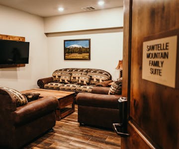 One King Bedroom, Two Queen Bunkbeds & 2 Twin Bunkbeds in one room, Kitchen, 2 bathrooms, Living Room with Pullout Couch, Patio w/Hot Tub.